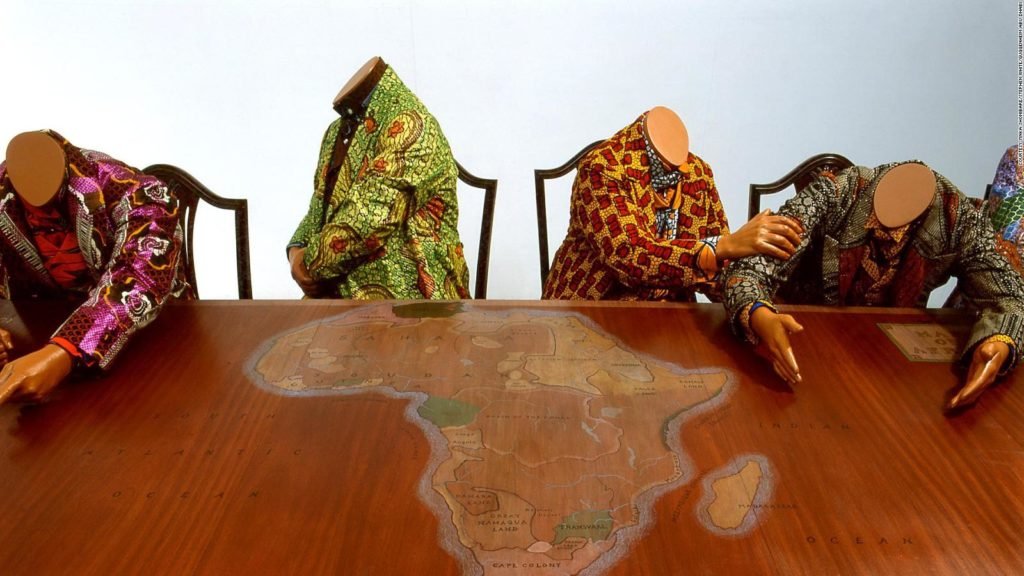 The work of artists like British-Nigerian installation artist Yinka Shonibare and Accra-born filmmaker John Akomfrah show a fascination with narratives of history, memory, place, identity, and race. They’re interested in telling and retelling the story of the role of Africa and African people on the international stage. At the heart of their search is a desire to present Africa in a fresh way, breaking down prevalent stories and fictions to tell new stories — of possibility and openness about Africa.